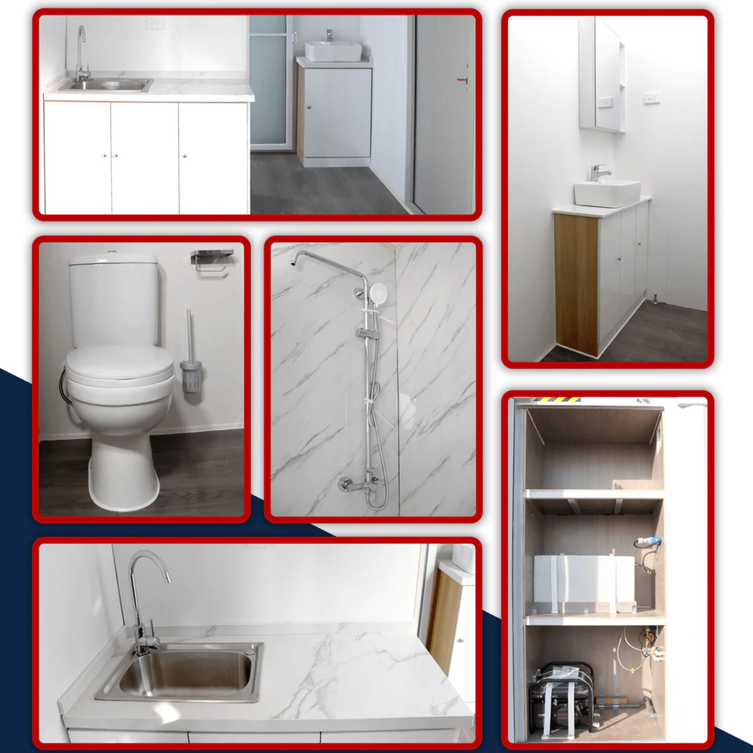20ft Modified Container House, a portable living space that combines convenience with the comfort of home. This modified container house features a shower room, toilet, and cupboard, making it ideal for various applications, from temporary housing to remote workstations. Experience the freedom of portable living without compromising on comfort and functionality.