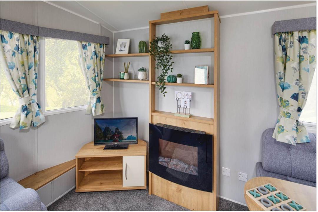 The large lounge-diner has fixed and freestanding furniture and the kitchen is equipped with standard appliances.